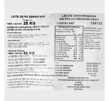 Você está avaliando: Leite em pó Desnatado 25 kg Soprole